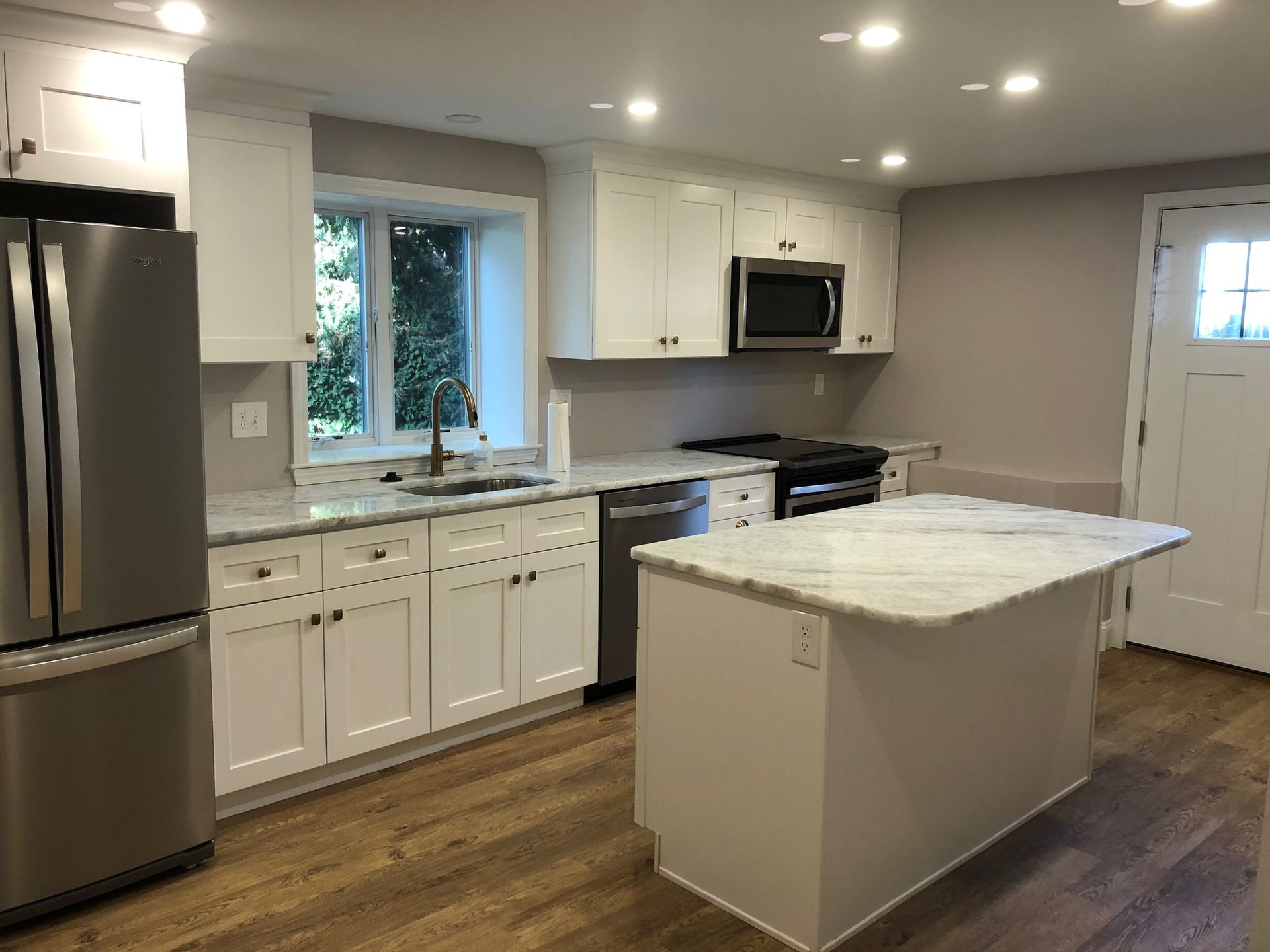 Kitchen renovations with modern cabinetry, countertops, and lighting
